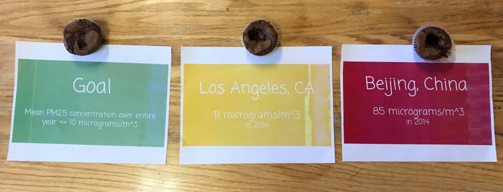 To surprise the audience they invite participants to taste different brownies but didn’t telling them that the amount of salt had been increased based on how much pollution in the air there is in different cities. The “goal” brownie has the right amount of salt to make it delicious, while the Beijing brownie tastes horrible. Trust me, I was the test subject when they presented it in class!