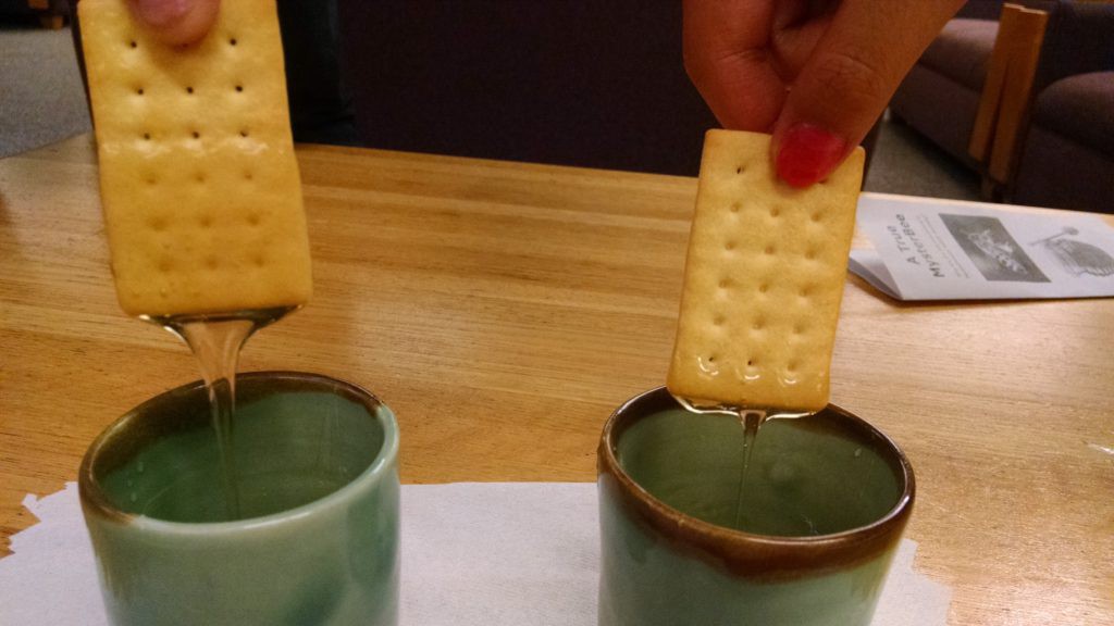 Let’s move on to the classic bar chart. A team of students from my 2018 class were digging into data about bee colony collapse across the US. Thinking of how to get people interested in a topic they might not otherwise be engaged with, the students decided to tell a high-level comparison story in honey itself by filling two cups with honey. Each represented a different year, and the amount of honey was based on the total production in each year. They invited the hypothetical audience to dip a cracker in each cup and compare — essentially creating drippy and delicious bar charts.